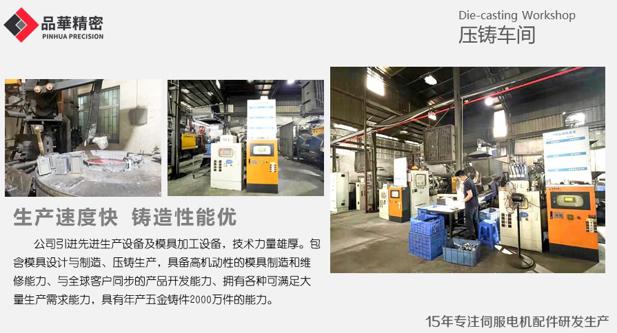 總的來說,各式各樣的方式可以處理好壓鑄毛坯的毛刺問題,但是前期的壓鑄模具設計也需要做周密考量,減少水口、披峰、毛刺。并且在壓鑄模具的使用過程中會發生各種各樣的變化,還必須做好日常壓鑄模具的維護保養工作,全壽命記錄壓鑄模具的使用、維護情況。總結分析壓鑄模具使用過程中的失效規律,并根據這些使用規律,定期更換那些易損的小型芯、頂桿等配件,做好壓鑄模具的預防性維護工作,為壓鑄產品質量提升打下基礎。品華精密位于世界著名的制造業基地廣東東莞市,為國內外知名伺服電機品牌做電機配套,是一家集開精密五金壓鑄、數控車、cnc加工等精加工為一體伺服電機配件專業生產廠家。